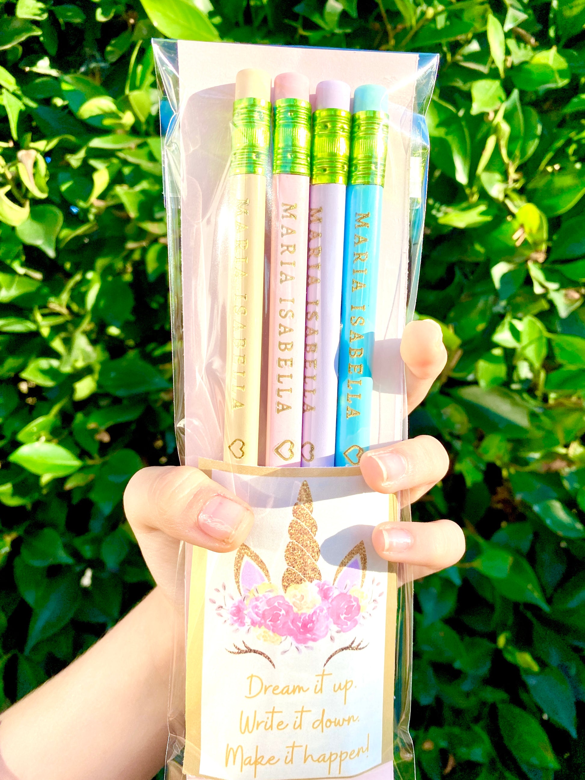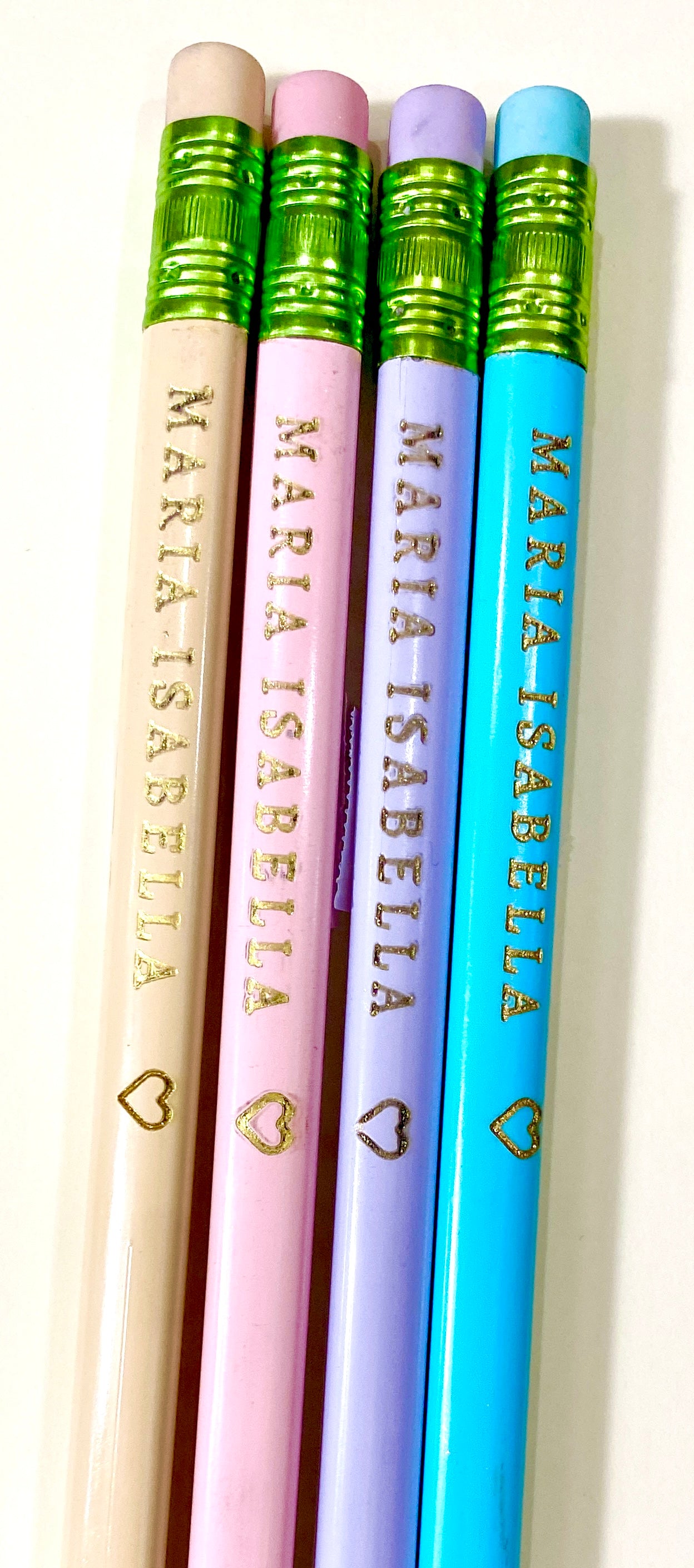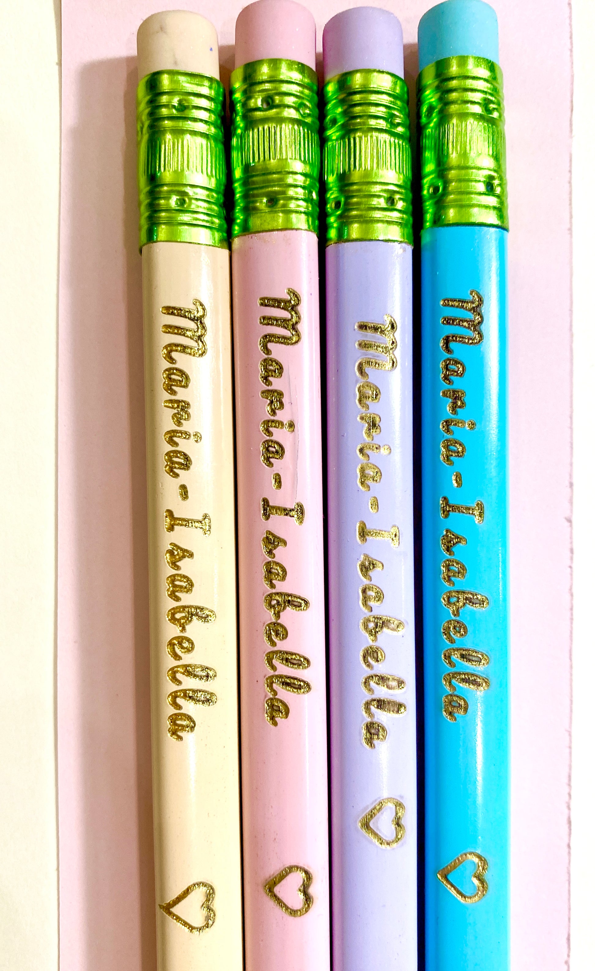 We will engrave each pencil then hand paint each name/phrase. The engraving is permanent and will not fade or wear off. The same name or phrase will be engraved on all 4, 6, 10, 12, 18, or 24 pencils in this order. If you'd like different names or phrases, please purchase additional listings for each one.